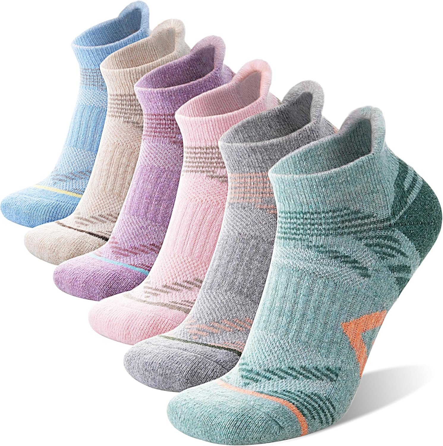 - 🏃 GENTLE COMPRESSION SUPPORT :The hiking wool ankle socks incorporates a gentle compression support technology, and a compression stripe is designed on the ankle and the arch , so that the socks can protect achilles and keep the socks in place,It can also enhance blood circulation , relieve symptoms varicose , reduce fatigue and help in muscle recovery. They are perfect socks for hiking , climbing , running , walking or other outdoor activities.