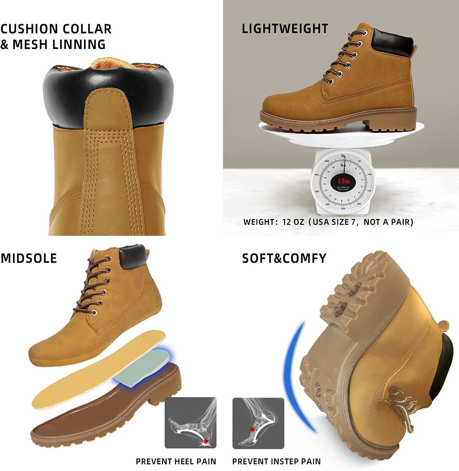 - 【Lightweight & Protective】: Our round hard toe boots are designed to be lightweight while offering protection for your feet. Weighing only 12 oz (per item), they are perfect for work, hiking, backpacking, construction and more.